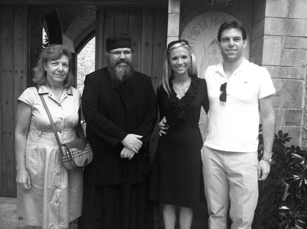 * Απο τις φωτογραφίες ξεχωρίζει και μια ιδιαίτερη στιγμή του ζευγαριού , όπου μαζί με τη μητέρα του Στέφανου Κασσελακη επισκέφθηκαν την Ιερά Μονή Οσίου Δαβίδ στην Εύβοια