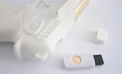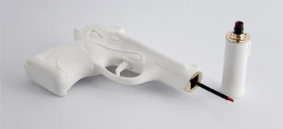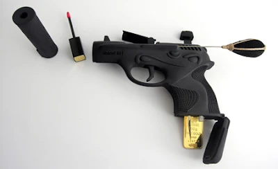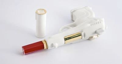 Το όπλο κρύβει καθρεφτάκι, κραγιόν - lip gloss, φουρκέτα, χρυσή οδοντογλυφίδα, μπουκάλι άρωμα, USB flash drive , χώρο για χαπάκια, και ένα κομμάτι...