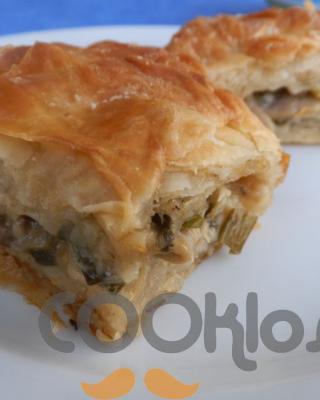 Υλικά συνταγής 1 πακέτο φύλλο χωριάτικο εμπορίου (450γρ. – 500γρ.) 1 συσκευασία (περίπου 700γρ.) μανιτάρια πορτομπέλο κομμένα σε φέτες 1 ...