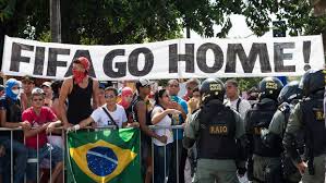 Ήδη από τον Ιούνιο του 2013 είχαν ξεκινήσει οι διαδηλώσεις στο Ρίο ντε Τζανέιρο και όχι μόνο. Περισσότεροι από 1 εκατομμύριο διαδηλωτές βγήκαν στους δρόμους για να διαμαρτυρηθούν για τα 11 δις δολλάρια που δαπανήθηκαν για την προετοιμασία των αγώνων αντί για την υγεία, την εκπαίδευση και τα μέσα συγκοινωνίας.