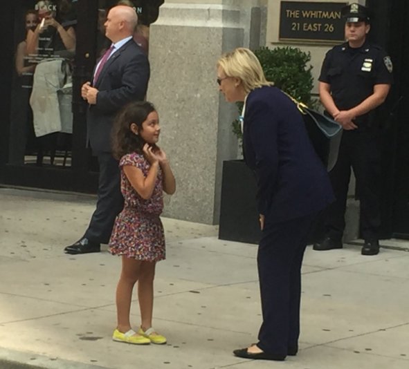 Λίγη ώρα αργότερα η Χίλαρι Κλίντον εμφανίσθηκε έξω από το κτήριο όπου βρίσκεται το διαμέρισμα της κόρης της χαμογελώντας όπου μάλιστα ένα κοριτσάκι την πλησίασε και της ζήτησε να φωτογραφηθούν μαζί.