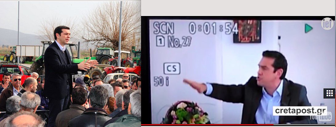 Συγκεκριμένα, ο κ. Κικίλιας ανέβασε δύο φωτογραφίες του πρωθυπουργού και έγραψε: «Ο Α. Τσίπρας έδιωξε αγρότες & δημοσιογράφους της Κρήτης λέγοντας: Εδώ δεν είναι εκπομπή. Αριστερά το 2014 χωρίς εκπομπή, δεξιά με εκπομπή».