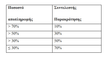 Τα ποσοστά συστηματοποιούνται και κλιμακώνονται, ανάλογα με το ρυθμό αποπληρωμής των ρυθμισμένων οφειλών.