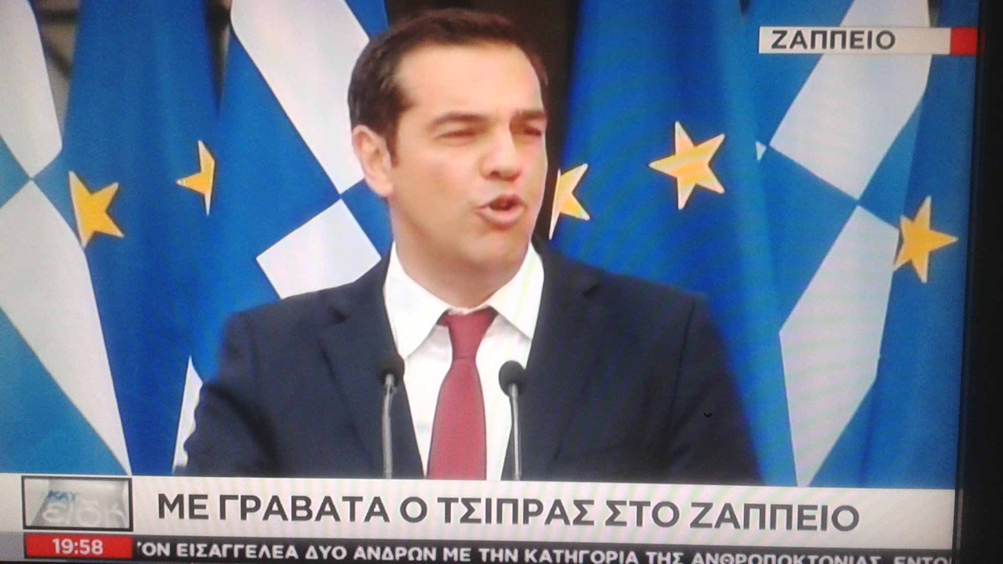 Στην κοινή, πανηγυρικου χαρακτήρα, συνεδρίαση των κοινοβουλευτικών ομάδων του ΣΥΡΙΖΑ και των ΑΝΕΛ στο Ζάππειο μιλά αυτή την ώρα ο πρωθυπουργός Αλέξης Τσίπρας, έχοντας φορέσει για πρώτη φορά γραβάτα... Αντικείμενο γαρ της συνεδρίασης η συμφωνία που επετεύχθη στο Eurogroup όσον αφορά στο χρέος.