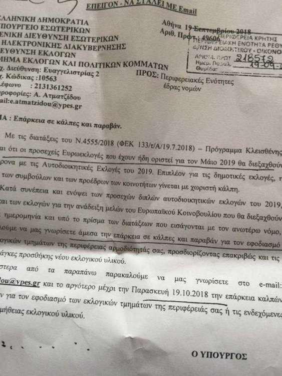 Όπως σχολιάζει το cretalive, που δημοσιεύει το έγγραφο, επειδή ως χώρα δεν το ‘χουμε να προγραμματίζουμε επτά μήνες μπροστά, επειδή έρχεται ως επείγον έγγραφο, επειδή πολλά λέγονται και περισσότερα εννοούνται για πρόωρες εκλογές και πριν τη λήξη της χρονιάς και μάλιστα τον Νοέμβριο, δεν είναι κι εντελώς αθώα αυτή η επιστολή που υπογράφεται από τον υπουργό Αλέξη Χαρίτση!