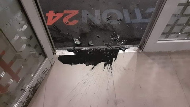 Επίθεση με μολότοφ και μπογιές δέχθηκαν νωρίς το βράδυ της Δευτέρας τα γραφείου του καναλιού Action 24 στην οδό Σκιάθου 147 στα Πατήσια.