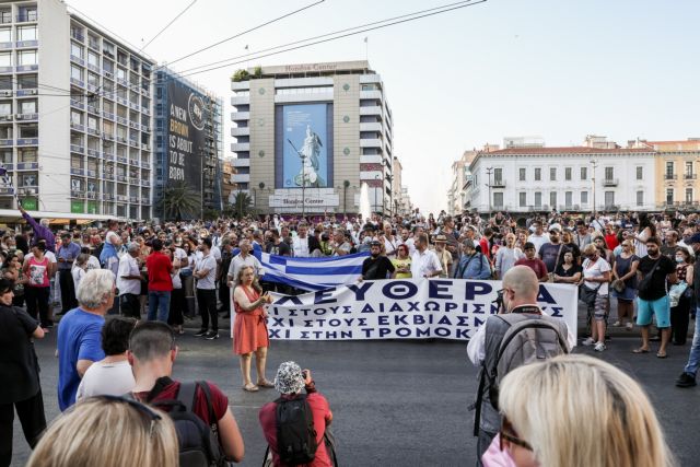 Συγκέντρωση διαμαρτυρίας σε δύο σημεία στο κέντρο της Αθήνας πραγματοποιούν πολίτες που είναι αντίθετοι στον υποχρεωτικό εμβολιασμό.