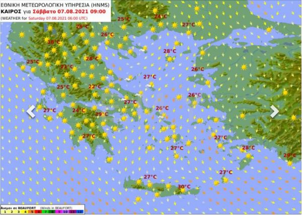 Θερμοκρασία: Από 21 έως 36 βαθμούς Κελσίου. Στη δυτική Μακεδονία η ελάχιστη 3 με 4 βαθμούς χαμηλότερη.