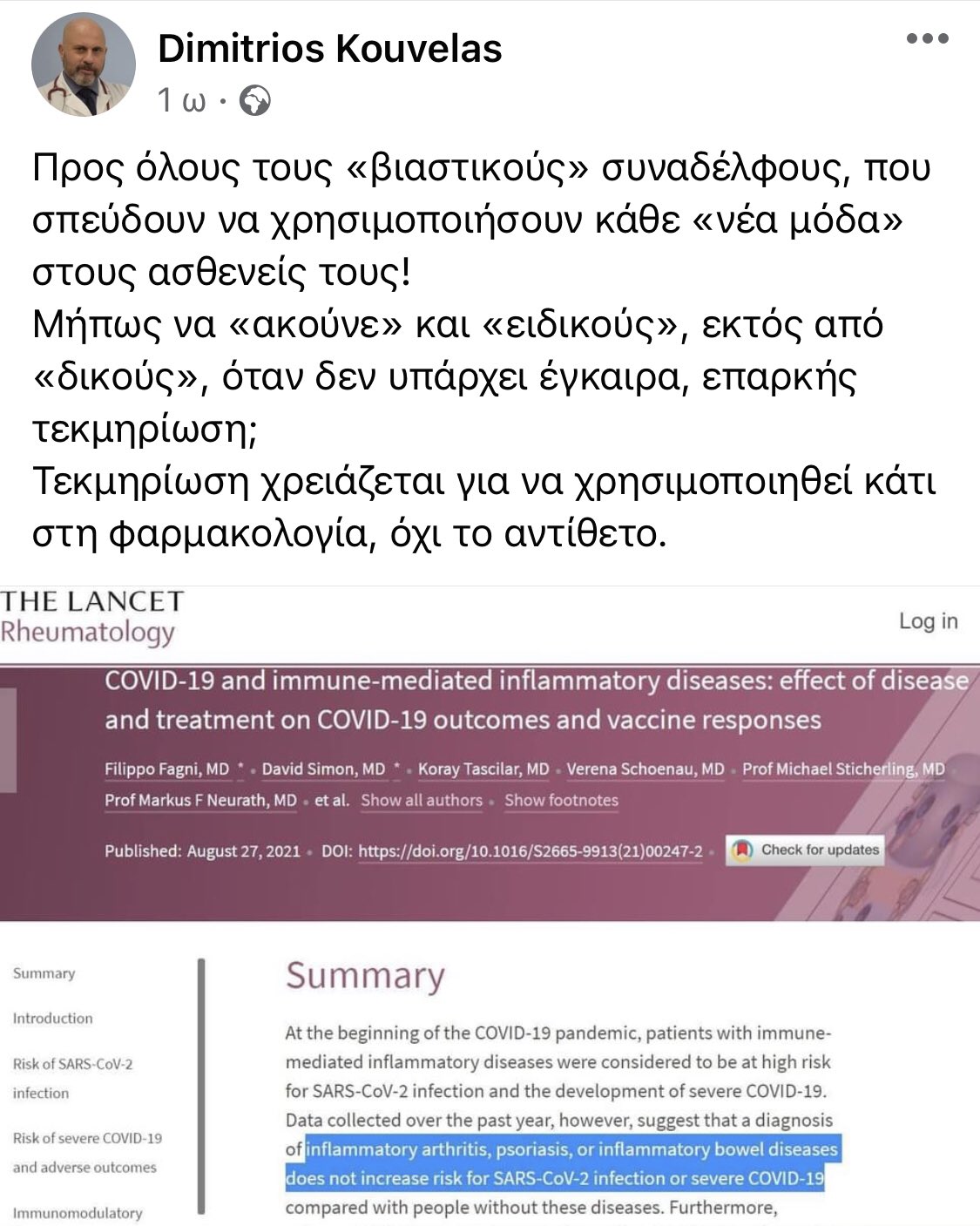 Δημήτριος Κούβελας Καθηγητής Φαρμακολογίας & Κλινικής Φαρμακολογίας στην Ιατρική Σχολή ΑΠΘ Προς όλους τους «βιαστικούς» συναδέλφους, που...