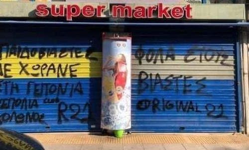 «Παιδοβιαστές δεν χωράνε στη γειτονιά. Φόλα στους βιαστές», ήταν τα μηνύματά τους, υπογράφοντας μάλιστα με το «Original 21 Σεπόλια-Κολωνός» στην πόρτα του μαγαζιού του 53χρονου μαστροπού.