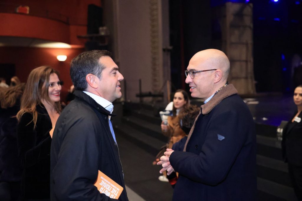 Μετά την παράσταση ο Αλέξης Τσίπρας και η Μπέτυ Μπαζιάνα επισκέφτηκαν τους συντελεστές της παράστασης στα καμαρίνια και συνομίλησαν μαζί τους