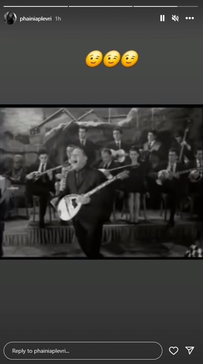 Σε story της στο Instagram, η Φένια Πλεύρη ανέβασε ένα απόσπασμα τραγουδιού στο οποίο εμφανίζεται ο Γιώργος Ζαμπέτας: