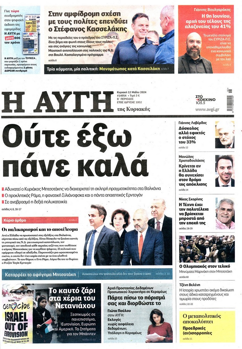 Διαβάστε τα πρωτοσέλιδα των κυριακάτικων εφημερίδων