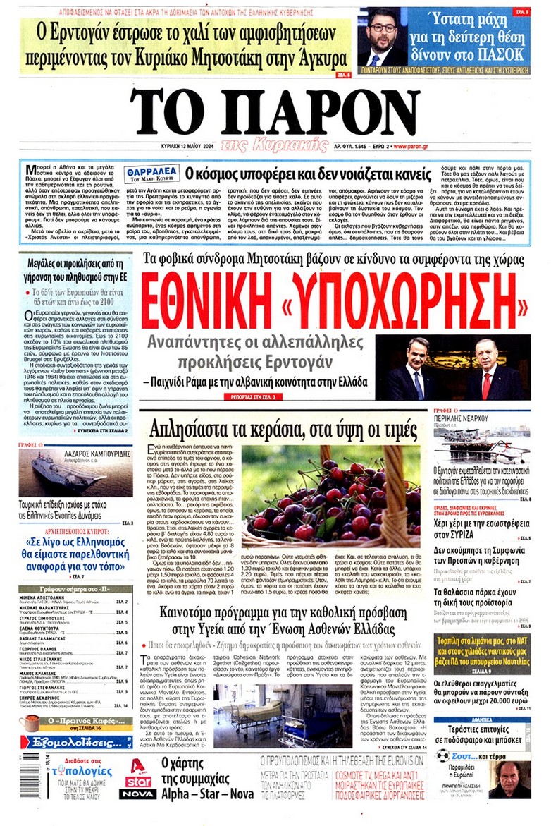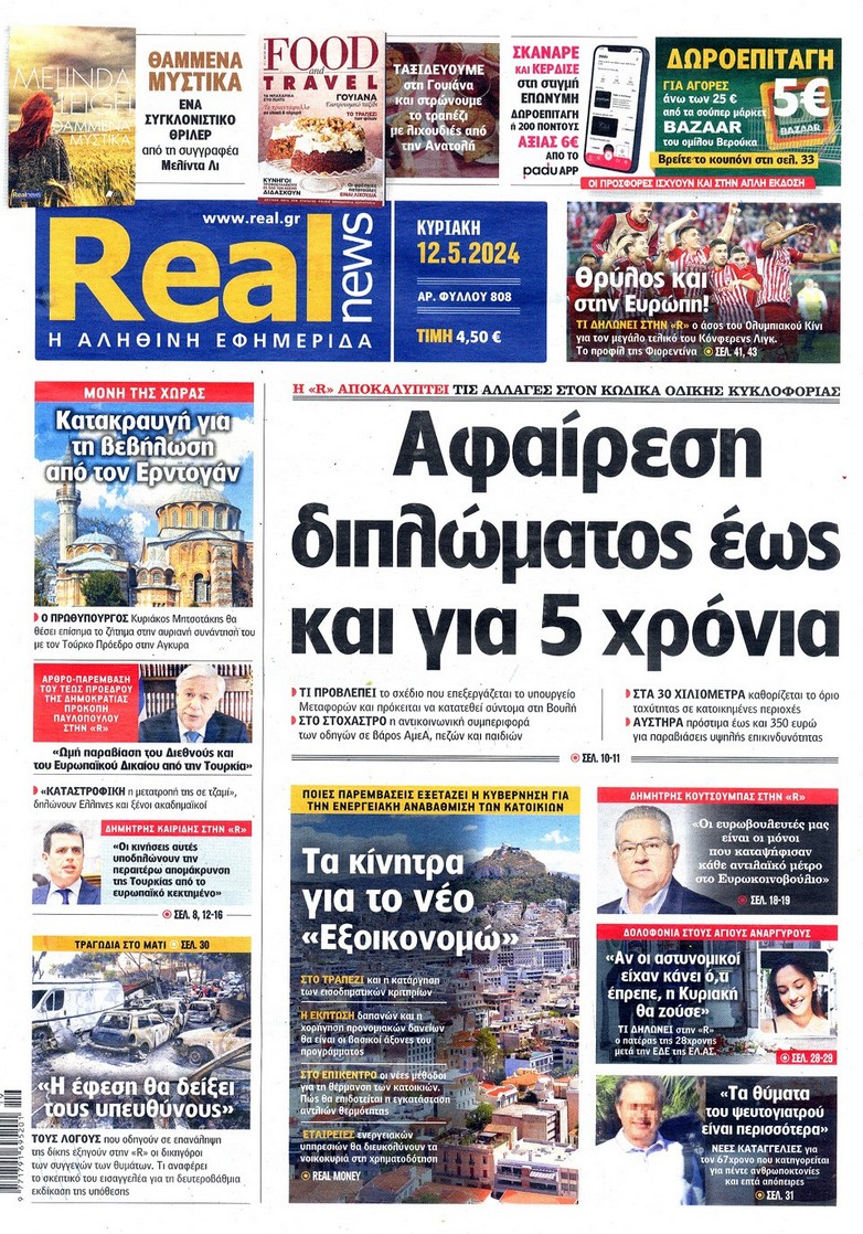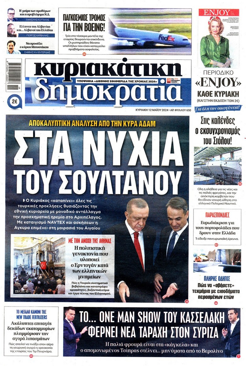 Διαβάστε τα πρωτοσέλιδα των κυριακάτικων εφημερίδων H Καθημερινή Documento Real News Απογευματινή Κυριακάτικη KONTRA NEWS Δημοκρατία Μακεδο...