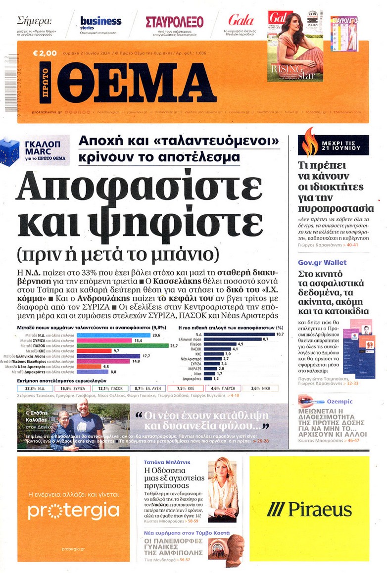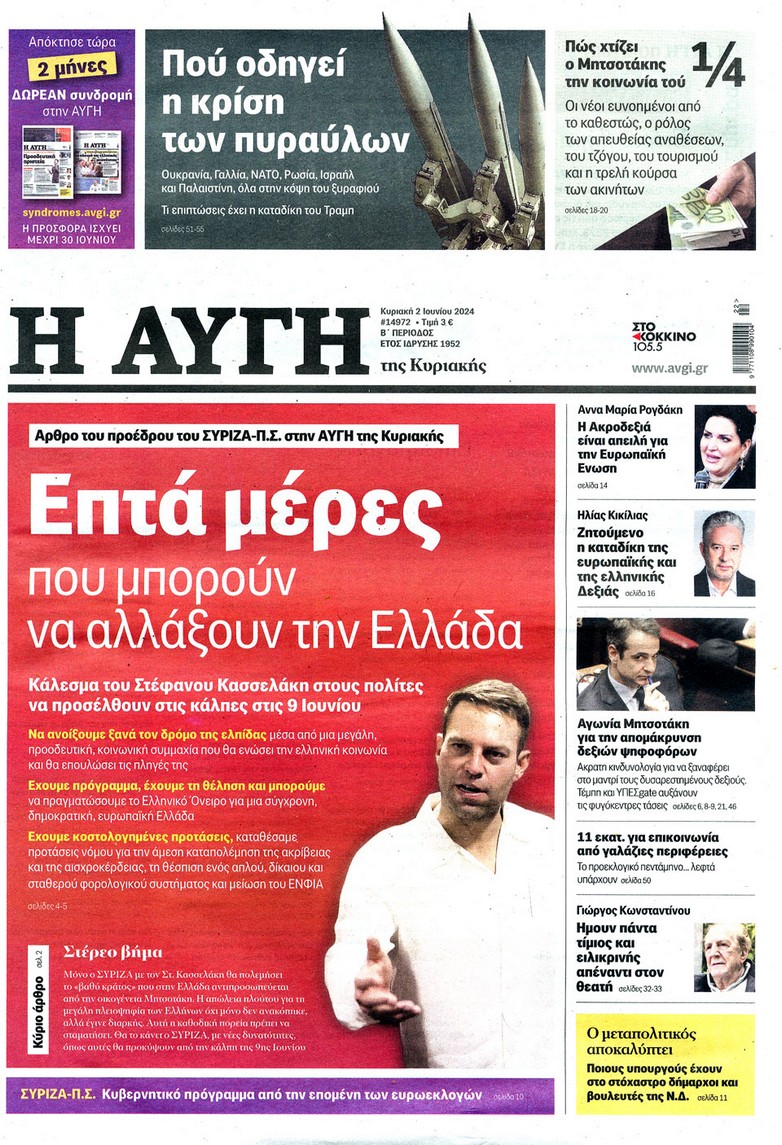 Διαβάστε τα πρωτοσέλιδα των κυριακάτικων εφημερίδων...