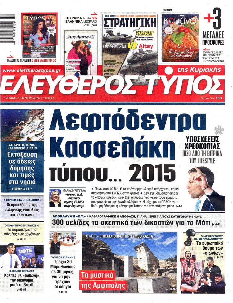 Διαβάστε τα πρωτοσέλιδα των κυριακάτικων εφημερίδων... H Καθημερινή Documento Real News Απογευματινή Κυριακάτικη KONTRA NEWS Δημοκρατία Μακε...