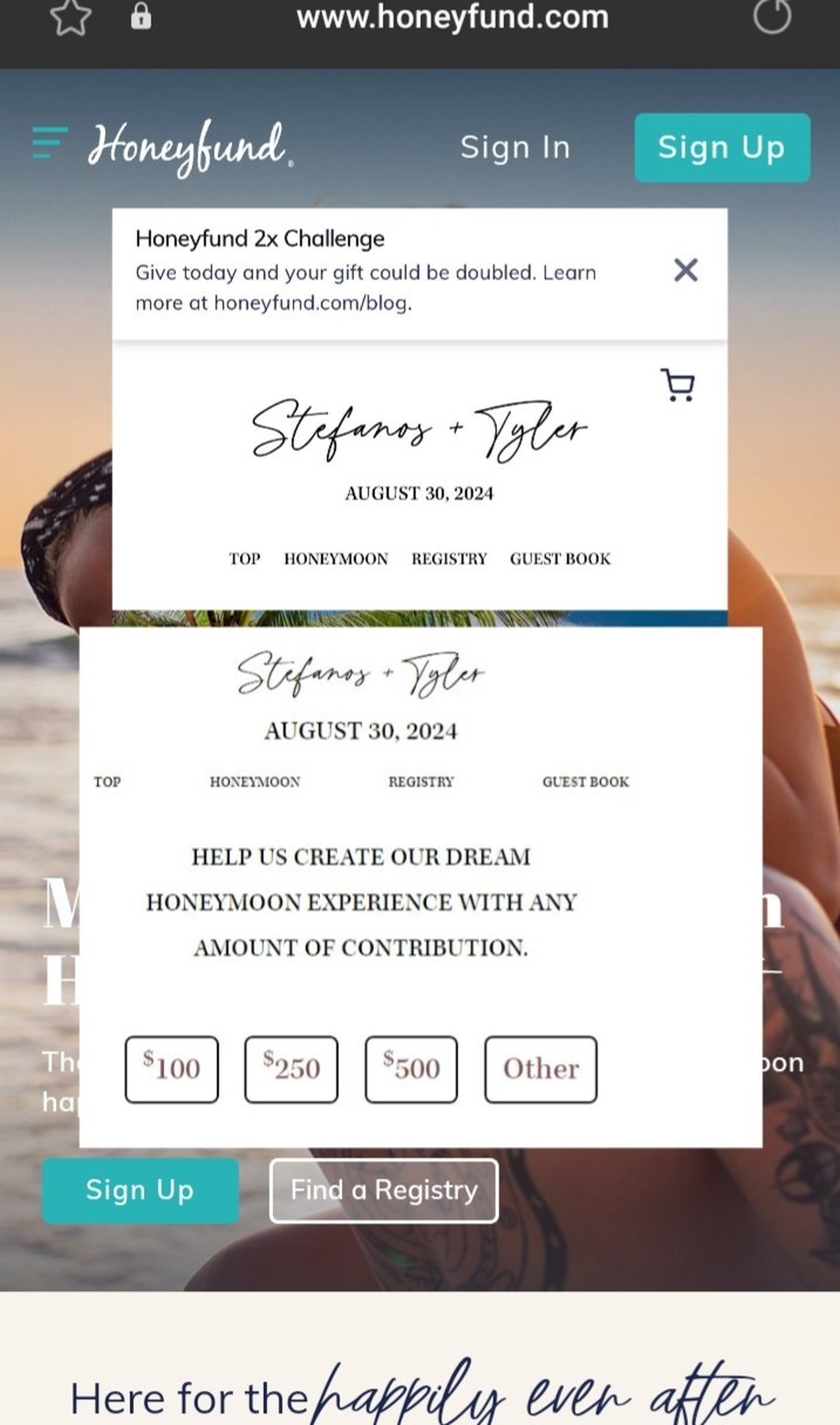 Πρόκειται για την ιστοσελίδα honeyfund.com, όπου οι ενδιαφερόμενοι μπορούν να καταθέσουν ένα χρηματικό ποσό μέχρι 2.500 δαλάρια αλλά και να αφήσουν ένα σχόλιο ή μία ευχή για το ζεύγος.