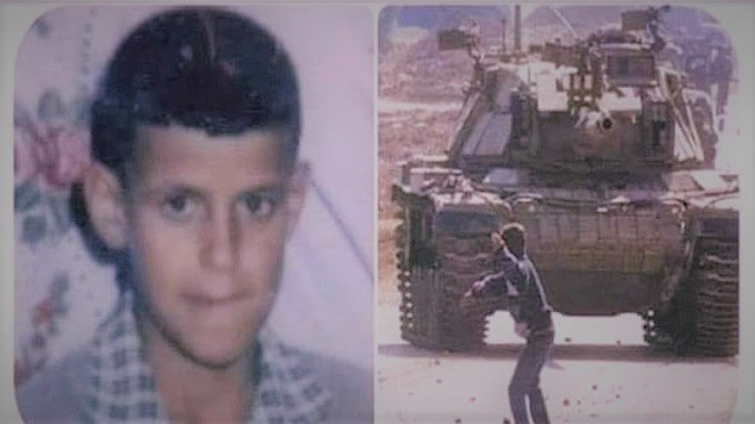 "Σ' αυτή τη γη υπάρχει κάτι που αξίζει να το ζήσεις..μητέρες που ζουν με το σκοπό της φλογέρας, και ο φόβος των κατακτητών για τη μνήμη": Σαν σήμερα, 29 Οκτωβρίου 2000, ο 14χρονος Faris Odeh πετάει πέτρες σε ένα ισραηλινό τάνκ. H εικόνα (με φωτογραφία απο το AP) γίνεται σύμβολο του Παλαιστινιακού αγώνα και απο τότε ταξιδεύει σε όλο τον κόσμο. Ο 14χρονος μαθητής δολοφονήθηκε δέκα μέρες μετά το περιστατικό, 8/11/2000,όταν Iσραηλινοί στρατιώτες τον σημάδεψαν στο λαιμό, ενω διαδήλωνε, μαζί με άλλους νεαρούς, ενάντια στην Iσραηλινή κατοχή και τα εγκλήματα της.