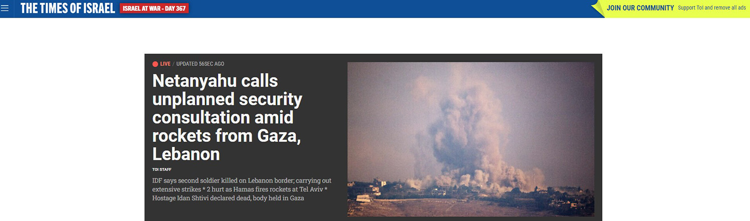 Έκτακτη σύσκεψη συγκάλεσε το μεσημέρι της Δευτέρας, 7 Οκτωβρίου, ο Ισραηλινός πρωθυπουργός, Μπενιαμίν Νετανιάχου, με τη συμμετοχή των υπουργών της κυβέρνησής του.