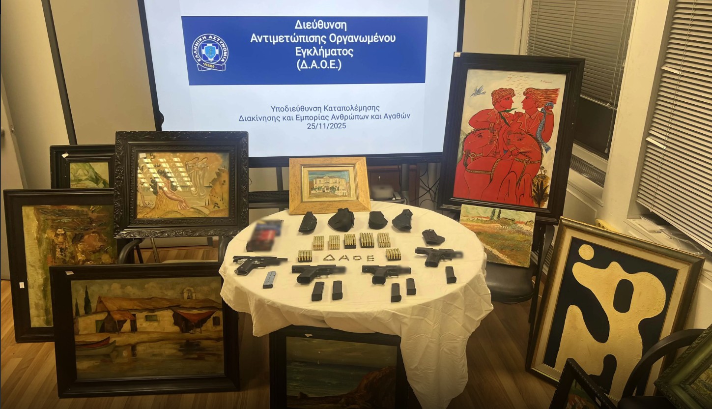 Πιο αναλυτικά, σε επιχείρηση του Τμήματος Προστασίας Πολιτιστικής Κληρονομιάς και Αρχαιοτήτων της Υποδιεύθυνσης Καταπολέμησης Διακίνησης και Εμπορίας Ανθρώπων και Αγαθών πραγματοποιήθηκαν έρευνες, παρουσία δικαστικών λειτουργών, σε οικίες των κατηγορουμένων, καθώς και σε άλλους χώρους, όπου συνολικά, βρέθηκαν και κατασχέθηκαν: