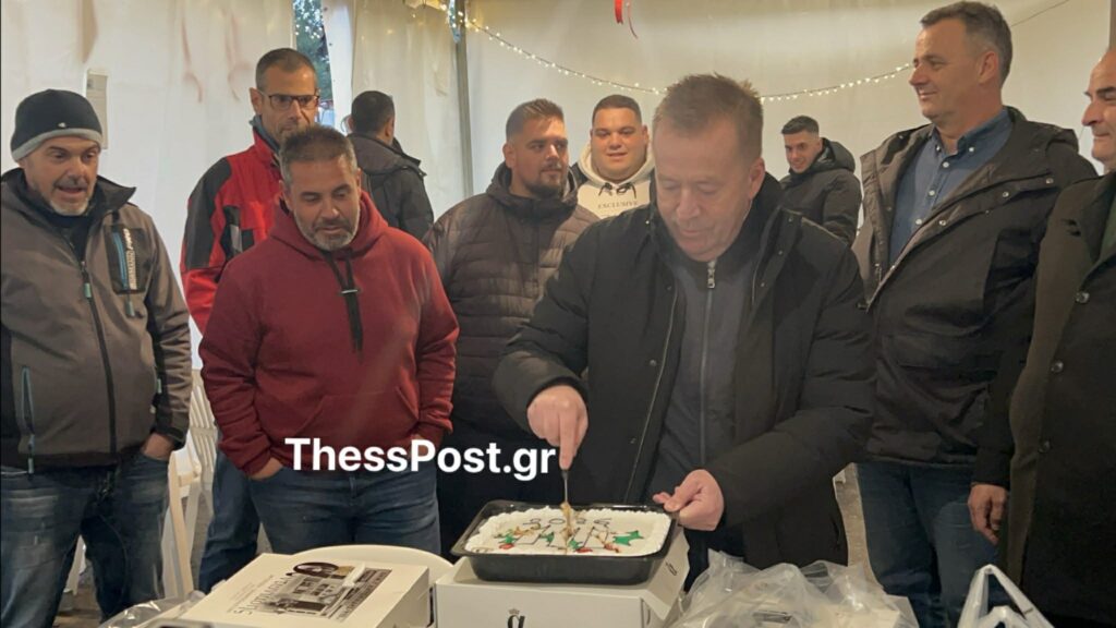 Όπως αναφέρει το thesspost.gr, νωρίτερα οι αγρότες έκοψαν κομμάτια βασιλόπιτας τόσο για τον πρωθυπουργό, όσο και για τον υπουργό Αγροτικής Ανάπτυξης, Κώστα Τσιάρα, αλλά και τον υφυπουργό Χρήστο Κέλλα, με το φλουρί, ωστόσο, να πέφτει στο κομμάτι των αγροτών.