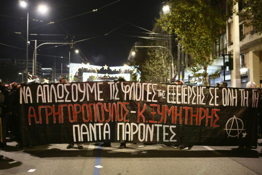 Σε εξέλιξη είναι μεγάλες πορείες σε Αθήνα και Θεσσαλονίκη για τη 17η επέτειο από τη δολοφονία του Αλέξανδρου Γρηγορόπουλου από τον ειδικό φρουρό Επαμεινώνδα Κορκονέα.