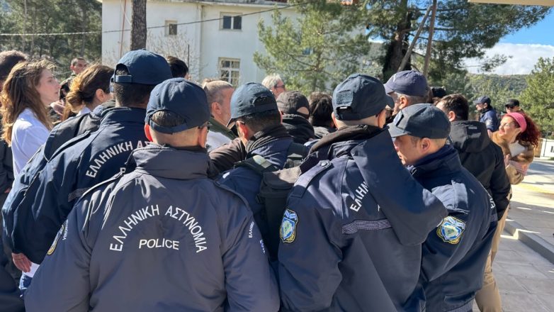 Στιγμιότυπο από την αστυνομική δύναμη που συνόδευσε τον Υπουργό στη Λέσβο
