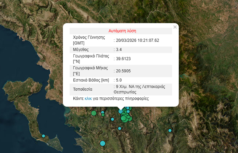 Στις 12:21 το μεσημέρι καταγράφηκε μια ακόμη σεισμική δόνηση στη Λεπτοκαριά, μεγέθους 3,4 Ρίχτερ.