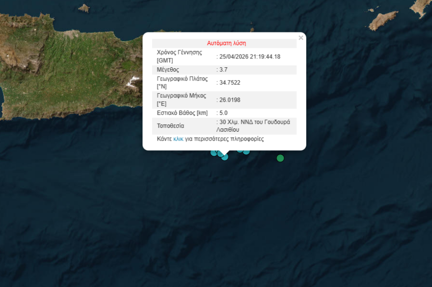 Υπενθυμίζεται πως το πρωί της Παρασκευής (24/4) έγινε σεισμός 5,7 Ρίχτερ στη θαλάσσια περιοχή επτά χιλιόμετρα νοτιοδυτικά του Γούδουρα και το εστιακό βάθος ήταν πέντε χιλιόμετρα. Ακολούθησε μετασεισμός 5 Ρίχτερ με επίκεντρο 18 χιλιόμετρα νότια του Γούδουρα και εστιακό βάθος 7,7 χιλιόμετρα.